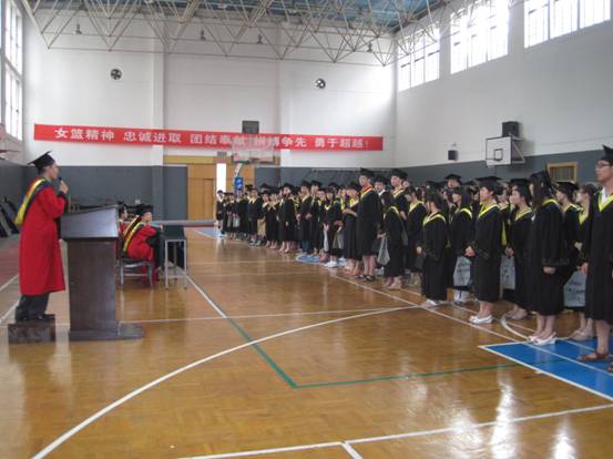本次活动由张治宏老师主持,首先全体老师和同学在操场集合进行校园步行一周的“母校伴我起启程“,以表达同学们对公司的恋恋不舍和员工从这里出发。大家进入体育馆由08级优秀毕业生代表贾燕妮同学代表发言,表达了同学们对自己大学四年生活的依依不舍,并感谢公司、公司和老师的辛勤培养,同时也展现了毕业生们即将踏入社会的豪情壮志。接着张治宏老师宣读了08级优秀毕业生有贾燕妮,宋玲瑶等,三好员工有周继强,张晨光等,优秀班干部有王东等;最后,并由公司领导授予员工学位证书并合影留念。