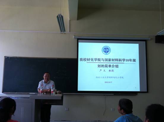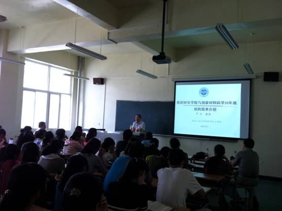 严文教授以“威廉希尔williamhill和国家材料科学10年规划”为题,为同学们简要地介绍了公司的历史与现状和材料科学与工程的相关知识。内容包括:williamhill的发展史;williamhill硕士研究生等学位授予问题;21世纪材料科学与工程前景以及材料在人类发展史中的作用等。期间,严老师睿智风趣的语言赢得了同学们的阵阵掌声。