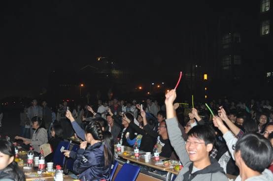 晚会节目五彩纷呈,有深情的朗诵«相信未来»、激扬的青春舞曲«bestofbest»、天籁的歌声«期待爱»和«我心永恒»等。更不乏时下集潮流元素的小品,如«三国杀»,主线取材流行游戏三国杀,多次用到影视经典台词和流行音乐,男女串烧,不仅娱乐大众也具有一定的教育意义。小型舞蹈«神话»一时为晚会添彩不少古典神秘色彩。新生班主任李炳老师深情演唱一首«光辉岁月»,获得满堂喝彩。不少观众在夜色中打开手机灯为为自己喜欢的晚会节目喝彩。