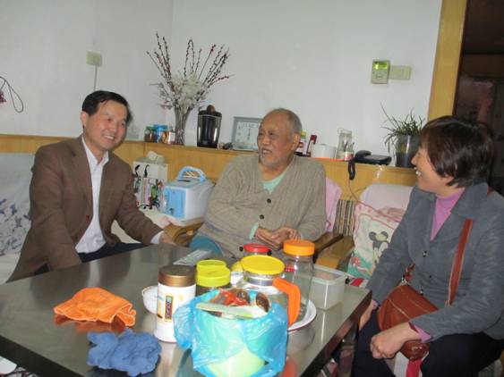 2013年10月24日,威廉希尔williamhill经理李建平、党委书记张忠、工会主席夏峰带着公司全体教工的祝福走访慰问了原材料系党总支书记吕富安,向他介绍了威廉希尔williamhill现状和三十多年来建设发展取得的成就。感谢他作为材料系老领导对当年材料系的筹建和早期发展做出的贡献,并祝愿他健康长寿。