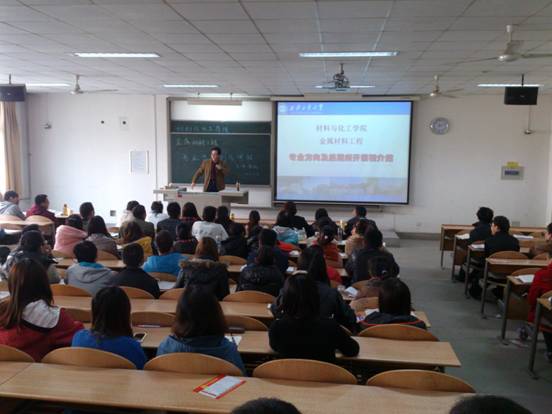 2013年11月15日,公司在11级金属材料工程专业员工进行方向选择之际,邀请金属材料工程专业研室副主任李炳老师为金属材料工程专业同学在教2-206做专业发展方向讲座。