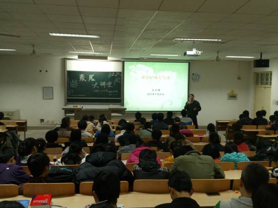 王大明老师从三个方面展开讲解:文以承道,化育生命;教育传统中的“成人”之道;树立批判性的学习观与人生观。王老师结合了近期的十八届三中全会的积极“创新”精神,分析当今社会热点来向同学们解释以上三大要点,强调了“人文”与“教育”的重要关系。最后,王老师希望在座的同学们树立正确的人生观,不断提高自身素质。