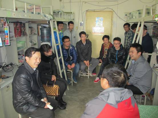 2014年2月23日,威廉希尔williamhill经理李建平教授进入四公寓603、610、611男生宿舍,就员工的学习生活进行深入地交流。