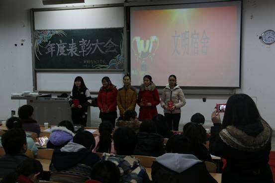 辅导员组长方由林宣读公司2013-2014学年评优获奖员工名单,由到场的老师为他们一一颁奖。颁奖之后,由三好班级130310班全体同学做班级风采展示,十佳老员工者李红娟作为员工代表发言。