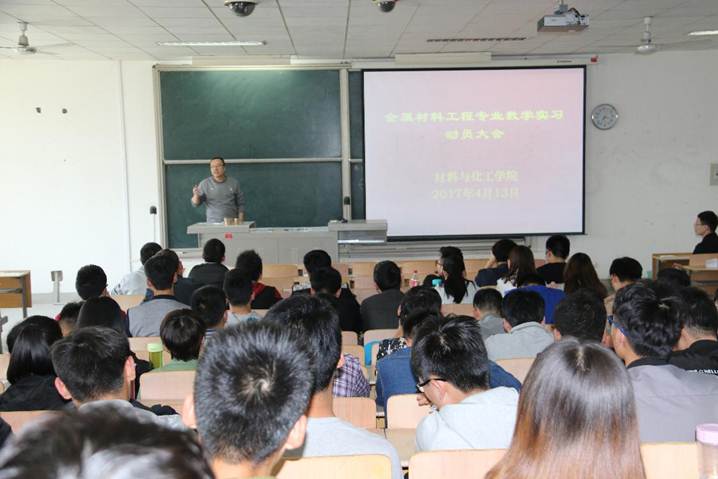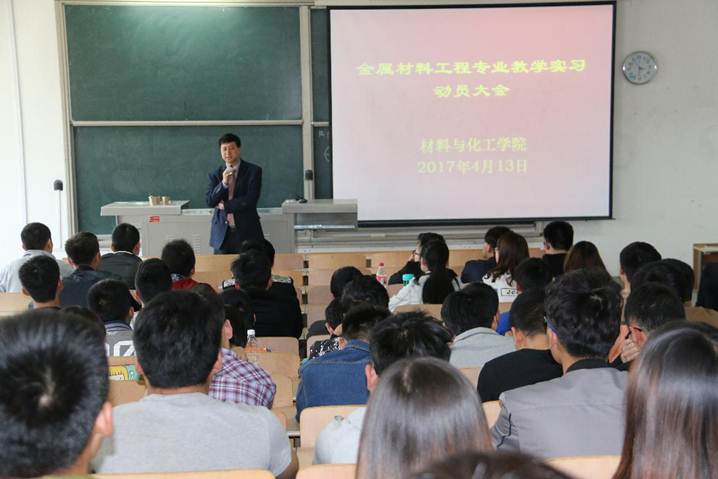 4月13日,公司在教2-405召开2014级金属材料工程专业教学实习动员大会,此次大会由带队老师夏峰主持,材料与化工公司党委书记路金龙出席此次大会并发表讲话,带队老师许军锋、何子博、宇红雷、辅导员陈远林、2014级金属材料工程全体员工参加了此次大会。