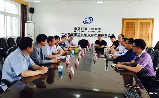 在原副董事长、公司员工总会副理事长刘建勋带领下,路金龙一行与兵器工业浙江华东光电仪器有限公司(5318厂)党委书记项舒年、总经理黄盛及相关员工进行座谈交流,参观了相关生产线。