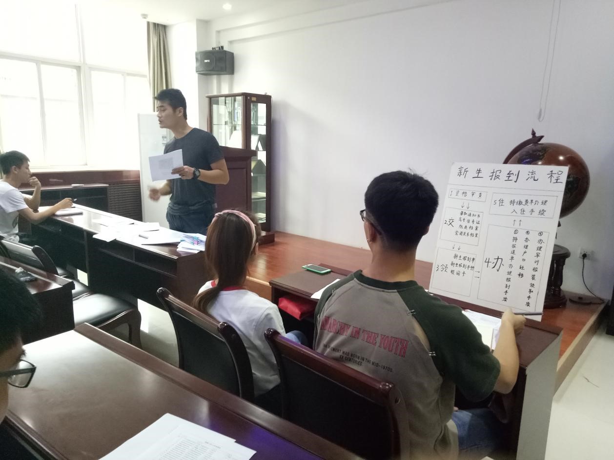为提高团学干部的政治素养和工作能力,进一步发挥团学干部的先锋模范带头作用,同时帮助2018级新生明后两天的顺利入学,合理分配迎新工作任务,确保迎新工作到位。威廉希尔williamhill团委于2018年9月2日下午在工三-404组织迎新工作培训会,全体团学组织成员参加此次培训会。会议由团委书记段强老师主持。