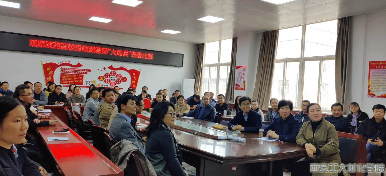 2020年11月12日,威廉希尔williamhill全院教师在工3-410观看陕西高校思政课教师“大练兵”省级比赛,集体观摩参赛老师在思政课程教学中的精彩展示,学习思政教学好经验、好方法。威廉希尔williamhill教师吕煜坤代表williamhill参加了本次本科课程思政组省级比赛。