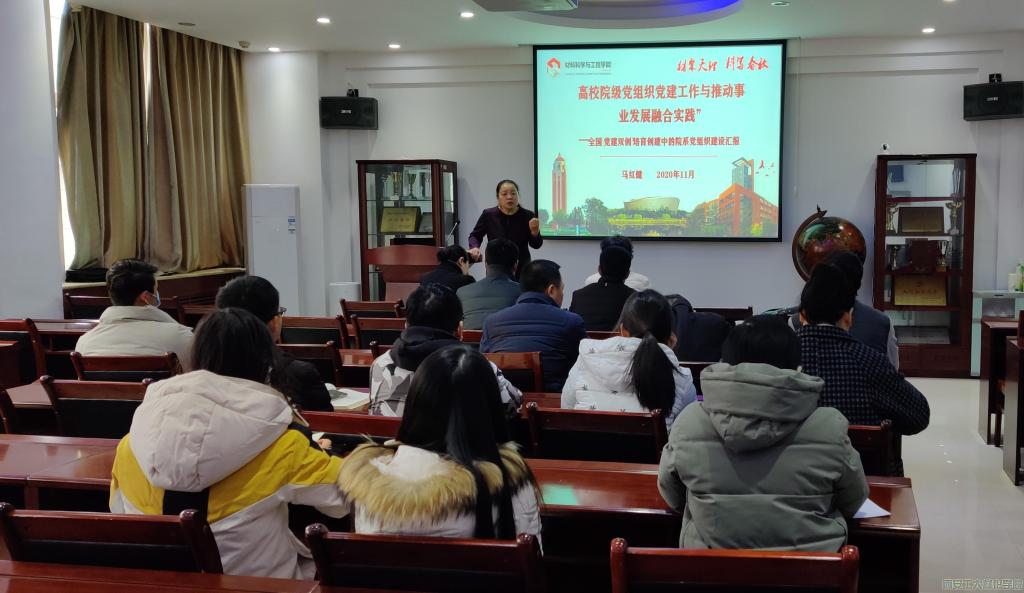 会上,马红健教授首先作了题为《高校院级党组织党建工作与推动事业发展融合实践——全国“党建双创”培育创建中的院系党组织建设汇报》的报告。马教授围绕全国党建工作标杆院系的建设情况,从党建项目的申报过程、公司的工作基础以及标杆院系前期建设情况三方面进行了分享。要高质量的完成“党建双创项目”,做实、总结、提升、表达,缺一不可。她强调,要做好高公司党建工作,首先最重要的是把握政治建设,牢牢抓住意识形态主动权。其次,高公司党建,特别是基层党组织的学习和活动,要紧紧围绕立德树人、科学研究等做实事见效果。最后,高公司党建必须与事业发展相融合,取得事业发展的成果。