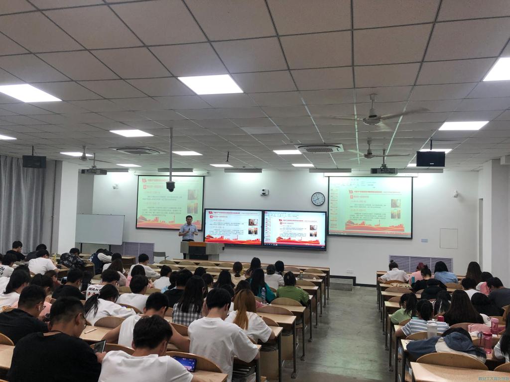 为了迎接建党100周年,提高当代老员工的党史理论知识水平,认真学习贯彻习近平总书记在党史学习教育动员大会上的重要讲话精神和党中央《关于在全党开展党史学习教育的通知》精神,2021年5月19日19:30在教2-111,校学工干部宣讲团成员侯剑波老师为威廉希尔williamhill员工宣讲了“回首百年征程,牢记初心使命”党史内容,威廉希尔williamhill2018级员工参加本次宣讲会。