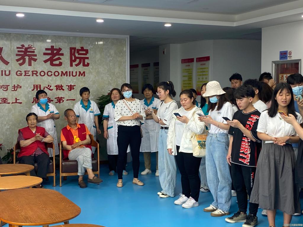 迎着朝阳,同学们脸上洋溢着出行的喜悦,一路欢乐高歌,向着目的地前行。顺利抵达养老院后,负责人先向敬老院的工作人员了解了有关情况,同学们则拿起清洁工具主动帮助清理室内卫生,为敬老院的干净整洁,尽自己最大的努力。随后,同学们又拜访了住在敬老院里的老人,询问他们的身体状况以及生活质量。然后,同学们一起为老人们演唱《小苹果》、《打靶归来》等歌曲。随后,一位老人独唱《说句心里话》、《小白杨》等歌曲,用歌声展现出了老一辈的风采。老一辈,是最温柔、最朴实的人,也是我们最应陪伴的人。同学们真挚的关怀,亲切的交谈,为平日清静的敬老院带来了许多欢笑声,整个敬老院洋溢着幸福、祥和的气氛。最后,养老院的经理为我们讲述了养老院的现状,同时也希望社会能给予老人们更多的关注。