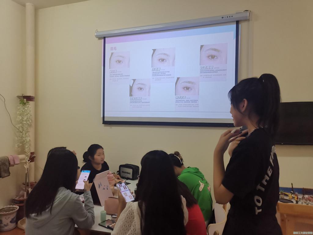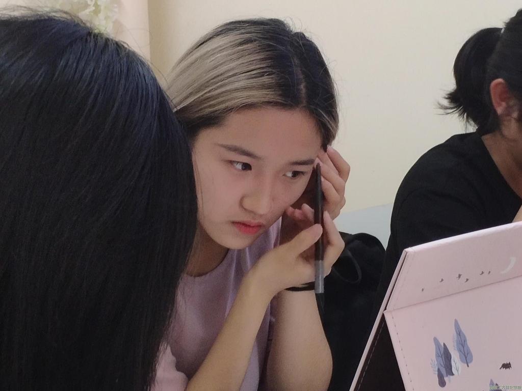 本次素质拓展活动由社交与礼仪协会会长房双双进行讲解。活动开始,员工干部房双双通过PPT的播放和讲解图文结合地向大家展示,如何根据自己的五官特征取长补短,从而做到有效化妆,并耐心的回答同学们对于如何在不同阶段更好的展示自己以及化妆技巧方面的各种疑问,讲解人向他们介绍不同肤质应当如何选择适合自己的化妆品等等。对于较有难度的化妆步骤,讲解人也在一定程度上给予指导,根据同学们自带的化妆品、化妆刷、化妆镜子等工具,帮助她们完成妆面。讲座接近尾声,讲解人也向大家可以使妆面更加精致的小技巧,比如适当的点痣等内容。