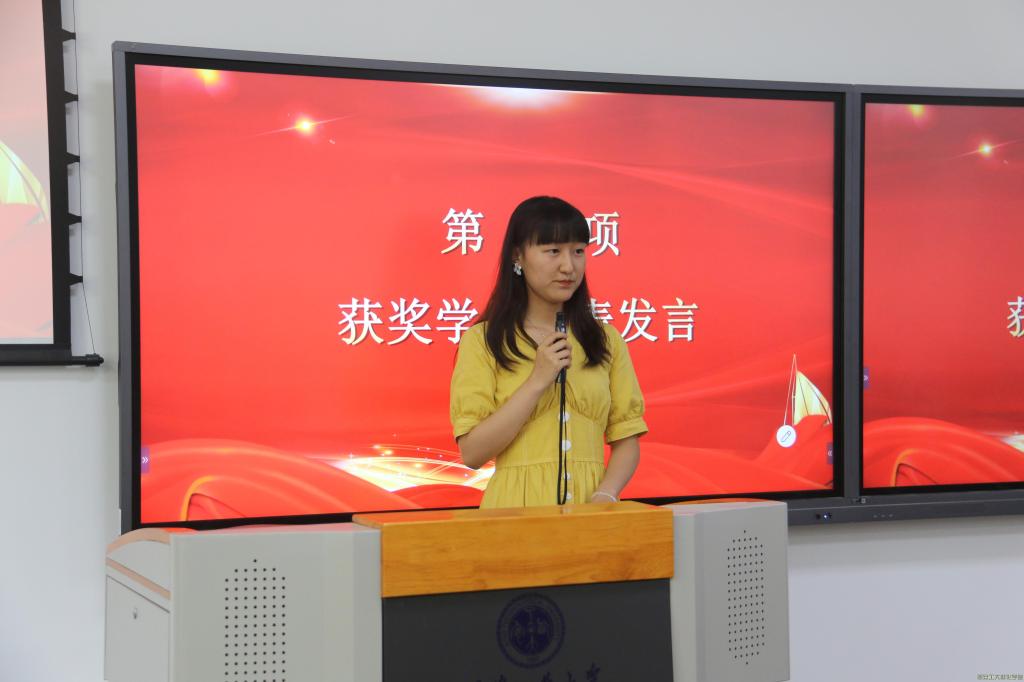 优秀辅导员助理张思雨和优秀员工干部代表张新依次上台发言,他们表达了对于此次表彰大会能获此荣誉的感谢,向大家讲述了自我成长变化的历程,并表露了要再接再厉、再创辉煌的决心。