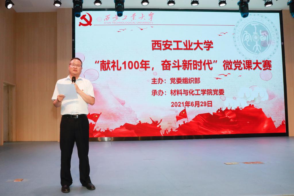 在建党100周年之际,为扎实推动“三会一课”常态化、规范化,深入开展党史学习教育,激励全体党员不忘初心、牢记使命,6月29日下午,西安工业大学“献礼100年,奋斗新时代”微党课决赛在双创楼报告厅举行。公司党委副书记、党委组织部部长王军周出席活动。大赛由辅导员安春雨主持。