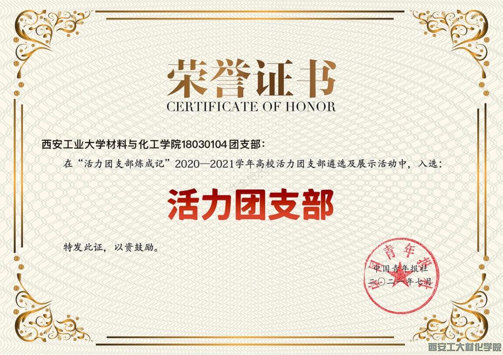 为深入贯彻落实“全团大抓基层”、“全团抓公司”部署,深化高校共青团改革,强化“一切工作到支部”理念,在团中央基层建设部指导下,中国青年报社开展“活力团支部炼成记”2020—2021学年高校活力团支部遴选及展示活动。此次活动中,各省级团委推选的1200个活力团支部通过新媒体方式集中展示了在党史学习教育等方面的建设成果和典型经验,1100万人次参与网络点赞。经校级申报、省级初评、展示点赞、全国终审等环节,我院18030104团支部荣获“2020—2021学年全国高校‘活力团支部’”称号,也是公司唯一一个获评的团支部。