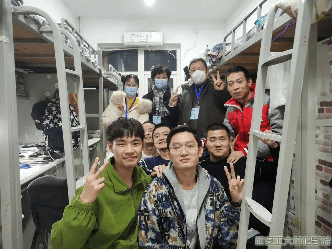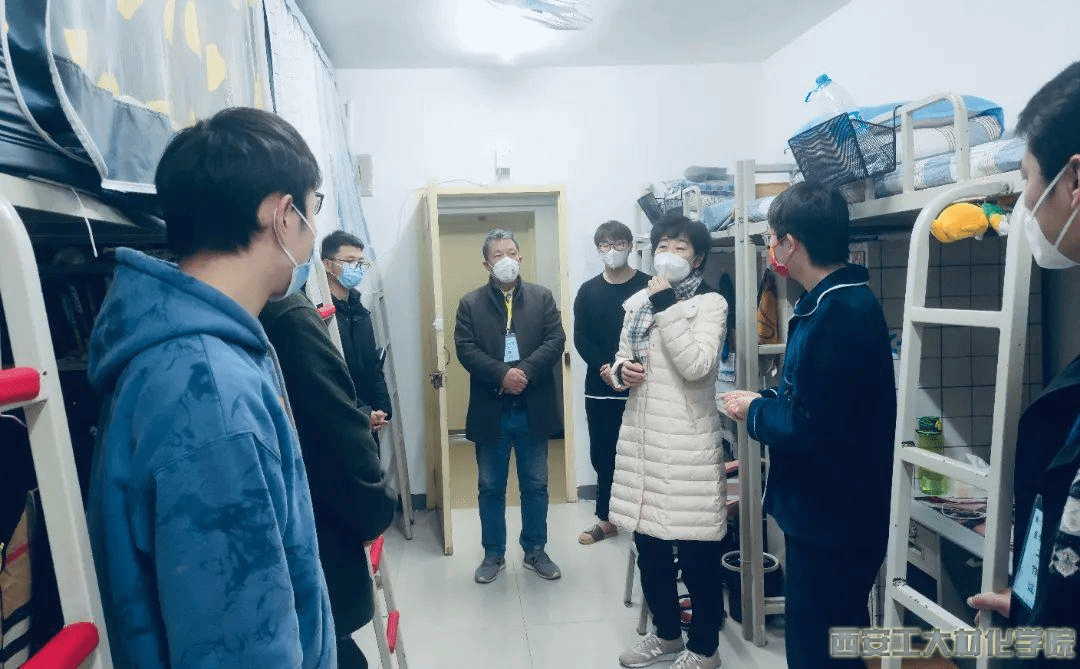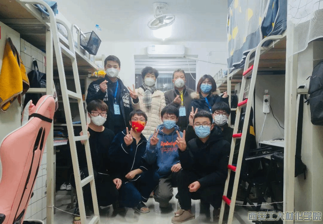 12月27日,疫情形势加重,材料与化工公司党委书记呼晓青、副书记陈卫星和五名本科辅导员、一名研究生干事立即回家收拾好行李,入住公司办公室和员工宿舍。八位老师驻扎公司后,逐一走访了公司所有员工宿舍,与员工谈心谈话,深入了解员工思想动态,密切关注员工身心健康状况,耐心解答疫情防控政策、期末考试、公司物资保障等问题,对员工遇到的实际困难给予及时帮助;并于考研、新年和新学期前夕深入走访员工宿舍,为员工送去暖心关怀和新年礼物。