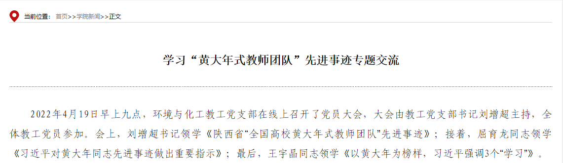 为贯彻落实习近平总书记对黄大年同志先进事迹重要指示精神,引导广大教师向黄大年同志学习,积极发挥时代楷模精神在全院的影响力和感召力,高质量完成教学科研工作,落实立德树人根本任务。威廉希尔williamhill按照公司党委宣传部《关于开展“全国高校黄大年式教师团队”学习宣传活动的通知》文件要求,结合实际工作,开展榜样学习月活动,在全院范围内开展向时代楷模黄大年及黄大年式教师团队先进事迹学习活动。
