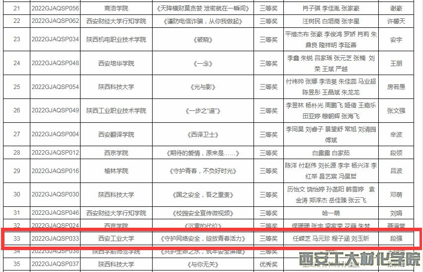 2022年4月7日至13日,公司围绕“守护青春,感悟新时代国家安全成就”主题,精心制作微电影、宣传教育短视频参加陕西高校国家安全教育主题优秀短视频征集活动,全省共135个作品入围,经过一个月的评比,公司2个微电影视频分别荣获省级二等奖和省级三等奖。