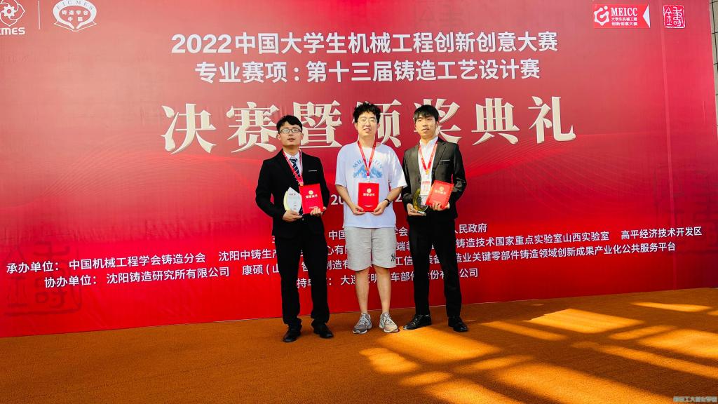 本届大赛2021年8月启动以来,得到了国内材料成型及控制等专业有关院校的积极支持与响应,吸引了来自哈尔滨工业大学、大连理工大学、沈阳工业大学、华中科技大学、华南理工大学、合肥工业大学、西华大学等共计101所参赛院校的835份作品报名参加,参赛员工共计2956名。公司积极组织参赛,共有6组22名同学参赛,其中本科生4组,研究生2组,指导教师为杨忠教授、马志军副教授、陶栋老师。经过线上初评与最终答辩,公司本科生组熊海涛、杨洋、田呁龙、刘晨宇团队荣获二等奖;田茜、金宇琪、钱科、陶鸿团队荣获三等奖;研究生组杨明年、马皓欣、曹旭团队荣获二等奖;赵磊、吴翰丰、王博团队荣获三等奖,同时,以上14位同学均获得见习铸造工程团队格证书。