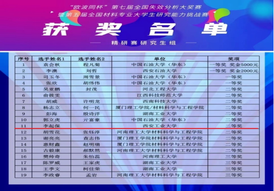 10月21日-23日,第七届“欧波同杯”全国失效分析大奖赛暨第五届全国材料专业老员工研究能力挑战赛初赛和复赛阶段的比赛在“云端”进行,威廉希尔williamhill参赛的两支队伍均获得了二等奖的好成绩。大赛分精研赛和创新赛两个赛道,精研赛道分本科生组和研究生组两个组别,创新赛道分本科生组、研究生组和专业组三个组别。