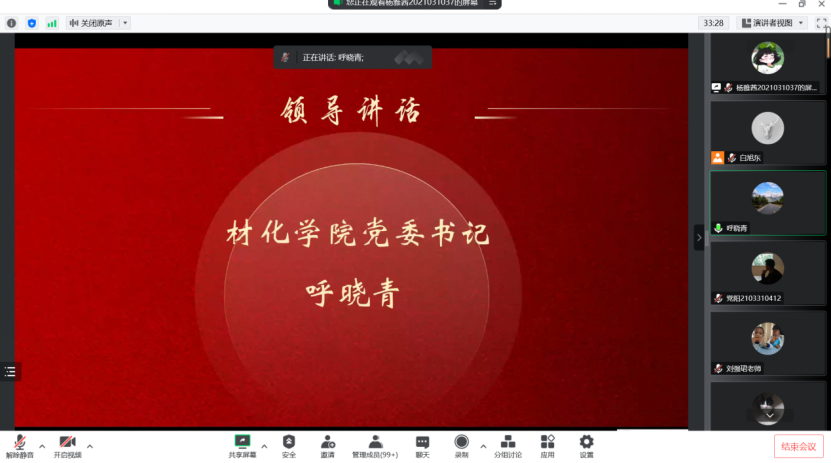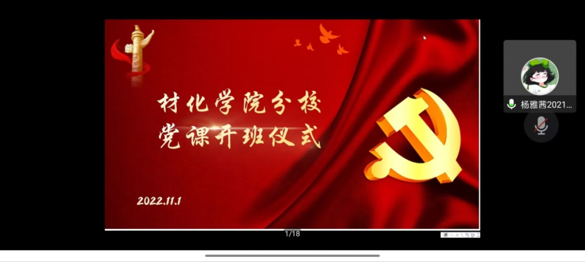 为了加强对入党积极分子的培训工作,增强员工党员干部队伍的建设,威廉希尔williamhill分党校于2022年11月1日线上召开第六十五期入党积极分子培训班开班典礼。材料与化工公司党委书记呼晓青、2021级辅导员刘强珺老师出席本次会议,培训班全体成员参加,会议由员工干部杨雅茜主持。