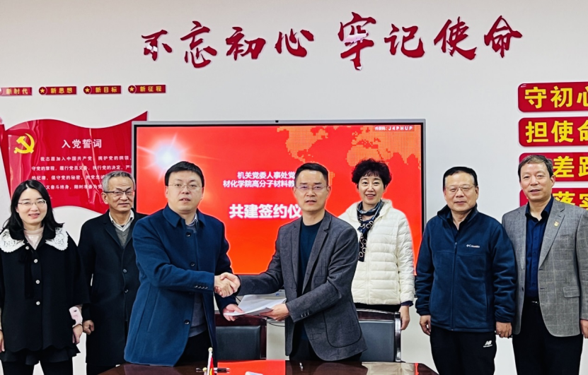 会上,机关党委书记姜冰清宣布了党支部共建决定。随后,人事处党支部书记高巍与高分子材料教工党支部书记侯永刚共同签订了《机关党支部与公司教工党支部结对共建协议书》。