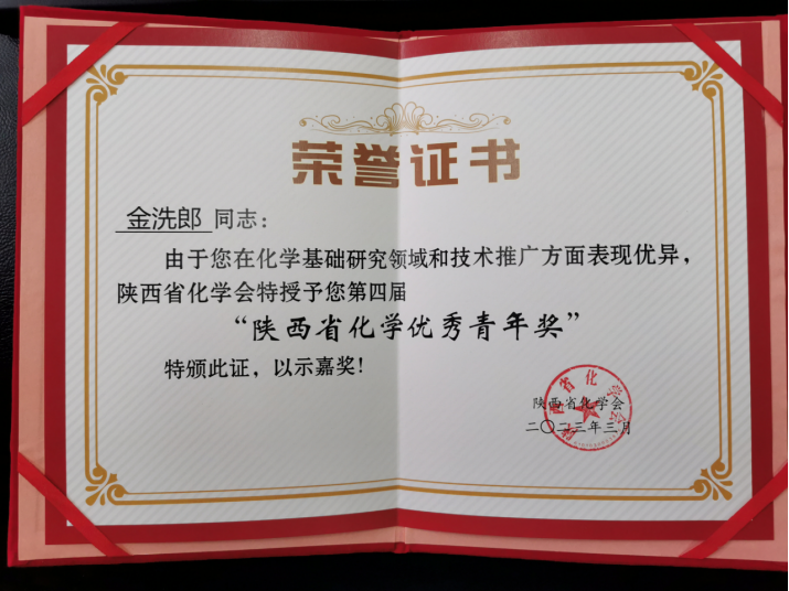 近日,由陕西省化学会主办、西北农林科技大学承办的陕西省化学会2023年度理事会工作会议在杨凌召开。公司威廉希尔williamhill金洗郎副教授荣获陕西省化学优秀青年奖。