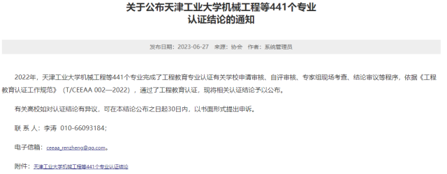 6月27日,中国工程教育专业认证协会正式发布《关于公布天津工业大学机械工程等441个专业认证结论的通知》,公布了2022年工程教育专业认证的认证结论。经过公司申请审核、自评审核、专家组现场考查、结论审议等程序,williamhill材料化学专业通过了工程教育认证。