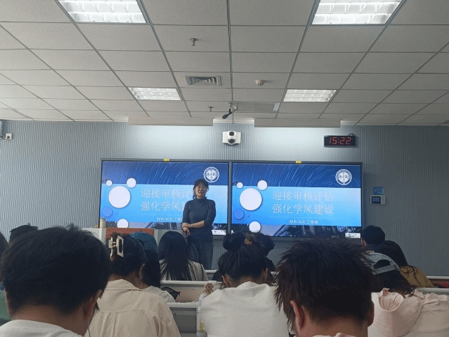 3月29日,2022级材料化学专业在工4-204召开“迎审核评估,促学风建设”师生交流会。会议由2022级辅导员张瑞红主持,材料化学专业教研室主任扈琳、副主任文瑞龙、教师代表高玲、士丽敏,材料化学2022级全体员工参加。大会开展2022级学风建设大讨论,专业老师为同学们讲解专业特色与研究方向,引导员工端正学习态度,回归员工本位,成为优良学风的倡导者、文明校园的践行者、迎评工作的贡献者。本次大会使同学们对审核评估工作有了更深入的了解,提高了同学们的迎评意识,扎实推进了材料化学专业的学风建设。