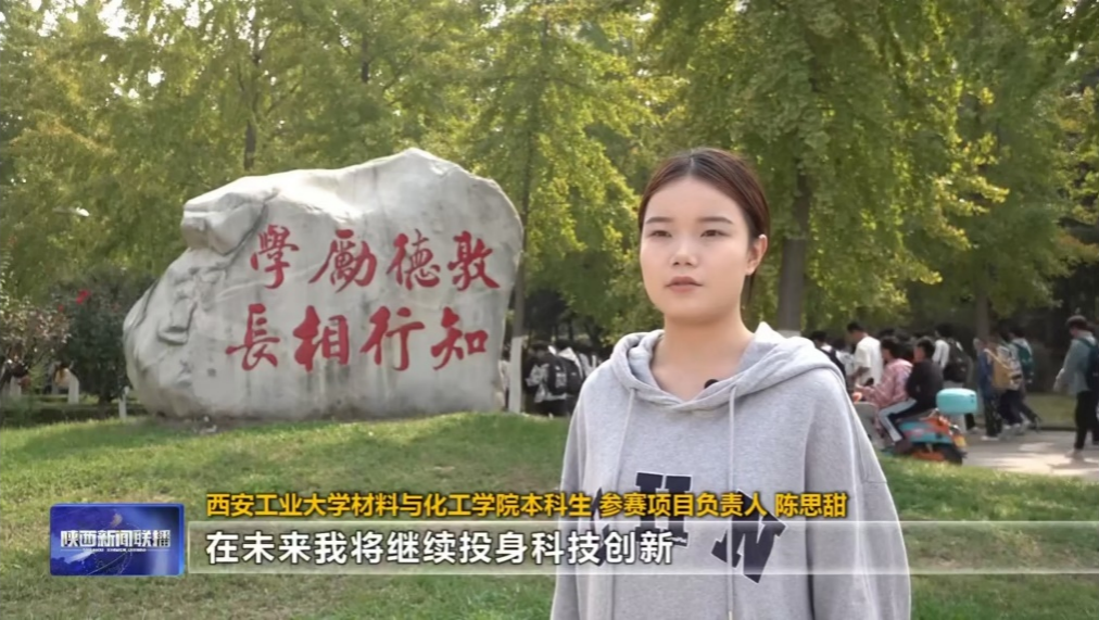 近日,《陕西新闻联播》报道威廉希尔williamhill老员工创新大赛国赛参赛项目——“变害为宝,一箭三雕:镁渣赋能聚烯烃石塑2.0复合材料启明星”,团队核心成员、2022级高分子专业本科生陈思甜代表团队接受采访。