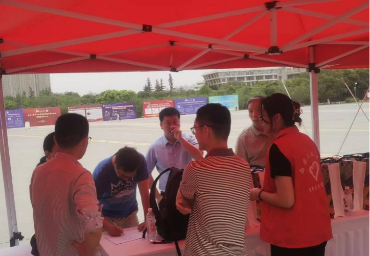 4月19日清晨,公司教师与志愿者们在经纬广场热情招待返校的员工,为他们登记信息并送上伴手礼,让员工们感受到浓浓的归属感与母校的亲切关怀。