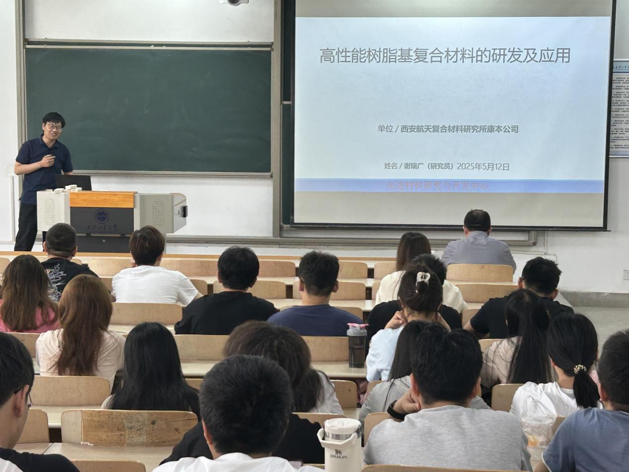5月12日,威廉希尔williamhill特邀请西安航天复合材料研究所谢瑞广研究员作题为“高性能树脂基复合材料的研发及应用”的学术报告。
