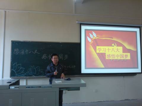 2013年4月19日,委书记张忠为全院教现做题为《中国梦,人民梦》学习辅导报告,全面解读了中国梦的丰富内涵、实现途径和保障机制等内容,号召全院教师加强对十八大会议的有关政策、决议进行研读,深刻领悟会议精神,感悟中国梦的丰富内涵,以自己的实际行动为实现中国梦而努力;要求各支把“学习十八大,感悟中国梦”作为组织生活的主要课题,结合支部实际开展丰富多彩的特色活动。