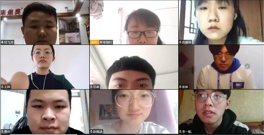 随后由车枭同志讲述了自己在疫情期间的故事,自小生于党员家庭的车枭,耳濡目染家人对党性的诠释,懂得了奉献,学会了担当,爷爷早年的事迹对他的触动很大,更是在车枭心中种下了奉献的种子,“512大地震”车枭对志愿者有了认识,疫情期间,母亲作为一名医生,奔波在一线,母亲的艰辛他看在眼里,也记在心中,他不顾爷爷、奶奶的反对,背着他们,选择了和母亲一起参与一线工作,小区消毒、接送往返医护人员、返乡人员登记、测体温等等,疫情期间他也怕过,但从未退缩过,即使有再大的困难,也绝不放弃。车枭的讲话引起了支部成员强烈反响,张瑞红指出车枭是我们的榜样,我们应学习他的这种奉献、无畏、担当的精神。支部成员(刘纾宁、包艾琳)就学习习近平疫情期间系列讲话以及车枭同学的发言也发表了各自的看法。接着张瑞红就校庆征文工作、党员推优工作进行安排。