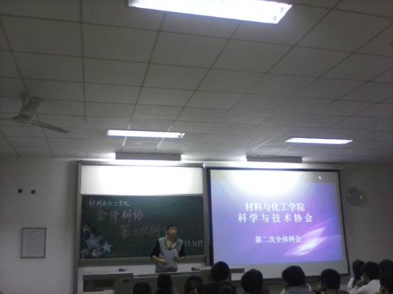 2013年10月27日晚7点,材化科协全体成员在教2-302举行了科协第二次例会,会议由科协主席李珍瑞主持。