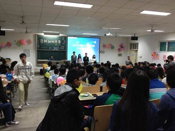 2014年10月23日晚7:00,威廉希尔williamhill科协于教2-306举办了一年一度的百科知识竞赛,2014级各班代表参加了此次比赛,威廉希尔williamhill分团委书记王国栋老师和各公司科协主席出席此次活动。