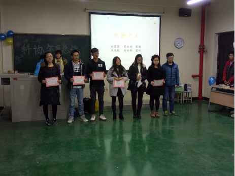 首先由主席张耀琪致辞,并为李秋曌、邹文轩等部长颁发“优秀部长”奖状,以及为崔琦,党林林颁发先进个人奖。然后,由副主席董芃凡为部门之星张翔、吴敏等人颁发奖状,副主席冯梁辰为“斧子演示优秀作品”获得者杨子杰,彭成等人颁奖。紧接着三位主席分别总结了这个学期科协的各项事宜,对优秀的部分提出表扬、对不足的地方提出批评并及时改正。最后张耀琪对各部员最初定下的目标进行询问,希望部员能够查漏补缺。至此,会议结束。