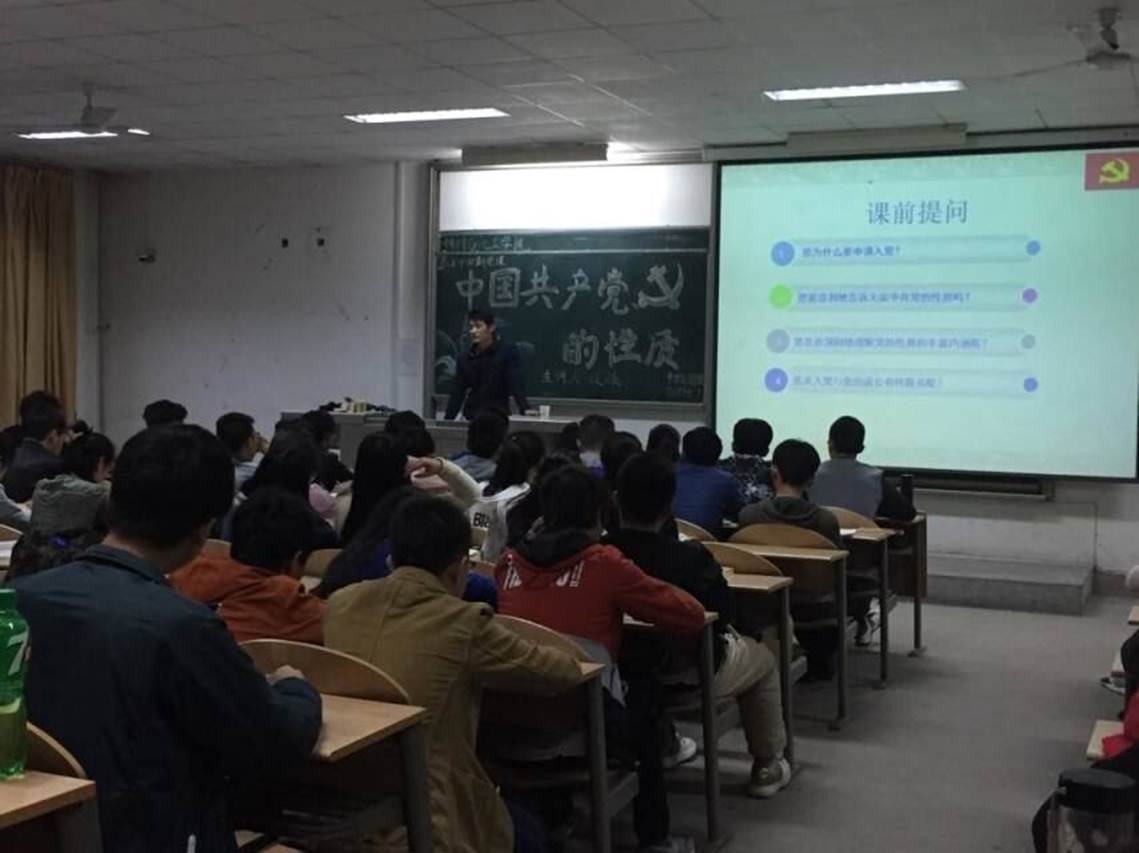 威廉希尔williamhill团委于2017年4月7日在教二201开展了第五十四期党课第一讲,由院团委书记段老师为大家讲解中国共产党的性质,参与此次党课培训的是各年级及员工组织推选出来的一百多位入党积极分子。