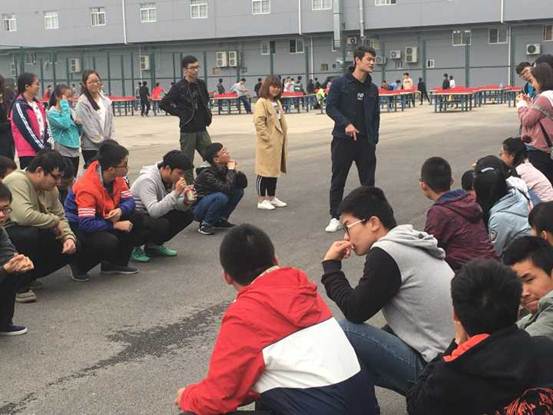 训练开始前,团委书记段强老师给参演员工们进行了简短的讲话,体谅大二年级课业繁重,但也希望同学们在课余时间可以将精力投入到体育活动中去,并鼓励大家以饱满的热情投入到训练中来。接着训练正式开始,在段老师的陪同下,团学科组织的员工干部分组对各班员工进行训练并加以指导。每位同学都努力训练,一旦做出不标准的动作,指导人员都立即指正,半小时的训练成果显著。最后,所有人以班为单位接受员工会的考核,经过反复训练,大家动作都比较标准,全员通过,本次训练活动圆满结束。