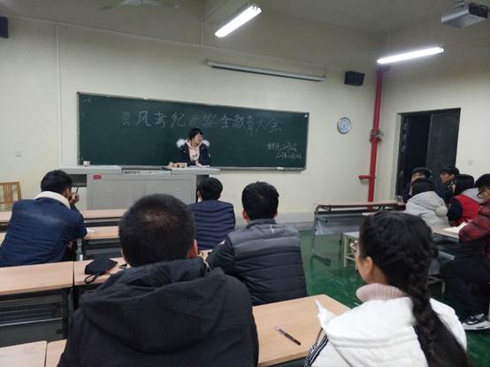 为了端正考风,严抓考风考纪,让2017级新生诚信考试。2017年12月28日,威廉希尔williamhill2017级辅导员刘强珺老师在工3-504召开2017级考风考纪教育大会。