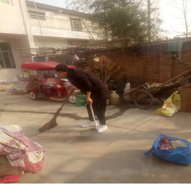 2019年1月29日早上九时,徐铭泽等4名同学前往马爷爷家中送去水果、牛奶等慰问品,帮助他们进行新年前的扫除工作,打扫卧室和庭院,整理床铺,擦拭柜子并整理杂物。