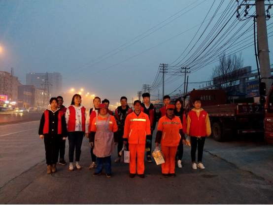 此次活动由青协主席刘麒,杨慧主持。清晨六点半,青协成员们在集团西南门集合完毕。有的带着慰问品,有的拿着热腾腾的爱心早餐,在员工干部的带领下来到校外的路边,展开为期一小时的志愿活动。志愿者们主动寻找那清晨中忙碌的身影并上前进行亲切的慰问,询问环卫工人们的日常工作以及生活状况,同时他们为城市环境的美丽做出的巨大贡献表示感谢。本次志愿活动伴随着志愿者们体验清理工作圆满落幕。