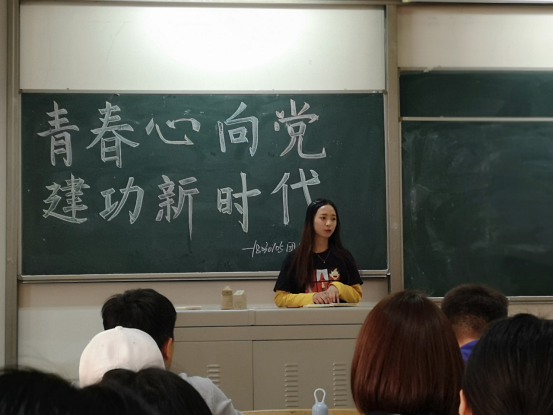 活动开始,副主席刘陈青对党的知识先进行了详细的讲解,让大家对党的知识有了更深刻的了解 ,也让在场的每个人意识到党对于当代青年的重要性,使同学们的心与党联系的更加紧密。随后,18030105团支部的同学代表依次上台演讲,深切表达了每个人对党的深刻认识和感受,表达他们对党深深的敬意,每个人心中也是满满的自豪感 ,更加深刻的意识到自己身上的重任。中国,一个富强、民主、文明、和谐并迅速崛起的国家,在国际舞台上有着越来越重要的地位。从一个落后的国家到现在的世界大国,没有哪一个国家不感叹我国经济发展的迅猛,而这一切的一切都是因为我国坚定不移的走着党的指导方针。是党,成就了我国现在的繁荣。最后,副主席刘陈青对带领大家一起重温入团誓词,并对本次团日活动进行总结。至此,本次团日活动圆满结束。
