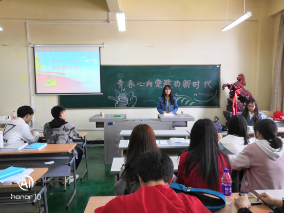 活动开始之前,团学张思雨从老员工的学习、生活两方面为同学们进行深刻讲解,针对同学们在校园生活中会遇到的问题提出详细的解决方案,通过团学干部耐心细致的讲解,大家不但对大学有更深层的认识,而且对今后的学习生活有更全面的规划。随后,团支书宣布演讲比赛正式开始,本次演讲比赛总共有18人参加,大家针对五四运动以及中华人民共和国成立70年的相关理论知识进行选题,并用新时代共青团员的激情和创新形式进行演讲,每一位团员的表现都获得了支部团员的阵阵掌声,最终评选出了3名最具感染力的演讲选手。第二项,团学干部张思雨同学带领大家进行五四运动相关视频的观看与学习,通过视频使同学们了解五四运动是一场伟大的反帝反封建的彻底性群众爱国运动,牢固树立为中华民族的伟大复兴而努力奋发的坚定信念。最后,团支书向支部团员们讲解习近平总书记提出的四个意识,四个自信和两个维护,使大家明白爱国主义精神,就是要坚定理想信念,紧紧团结和凝聚在党的领导下。至此,本次团日活动完美落幕。