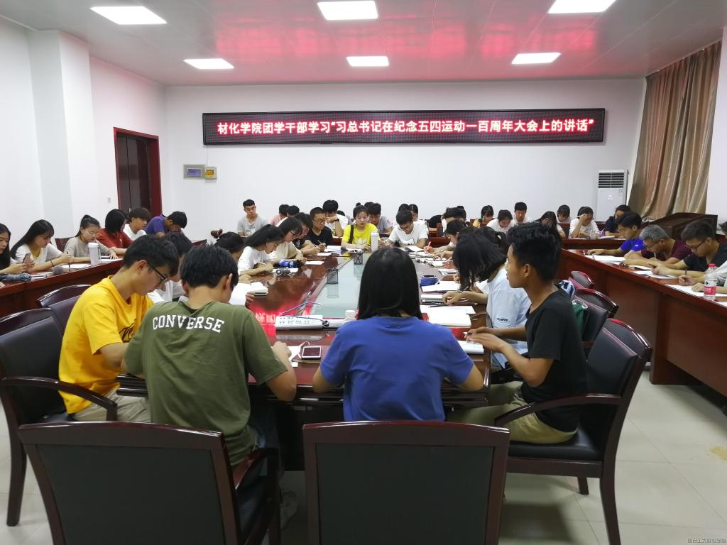 为缅怀五四先驱崇高的爱国情怀和革命精神,激励当代青年为全面建设小康社会,加快建设社会主义现代化国家的步伐、实现中华民族伟大复兴的中国梦,威廉希尔williamhill团委组织全体团学干部于2019年6月10日晚6时在工三-410学习“习近平在纪念五四运动100周年大会上的讲话”。