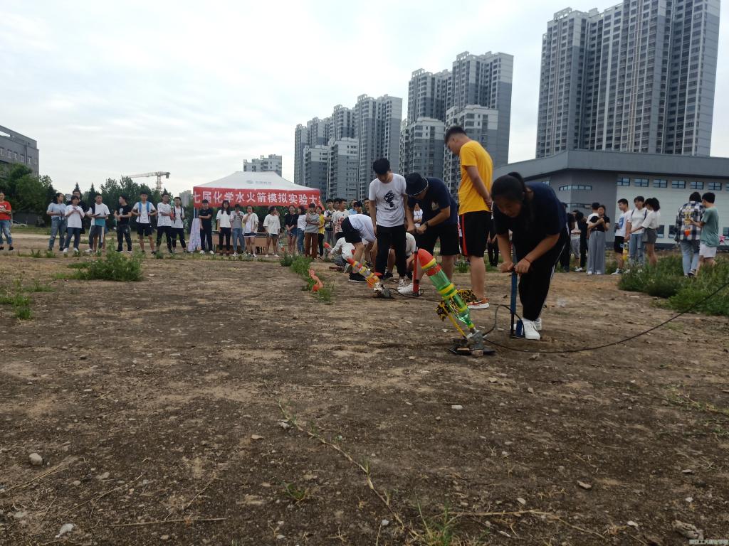 为培养大员工设计、制作和创新能力,提高员工的科技素养及创新实践能力,威廉希尔williamhill科学技术协会于6月15日下午5时在公司未央校区篮球场旁西边空地举办以“建国七十,中华腾飞”为主题的化学水火箭大赛。科协全体工作人员及参赛选手参与此次大赛。