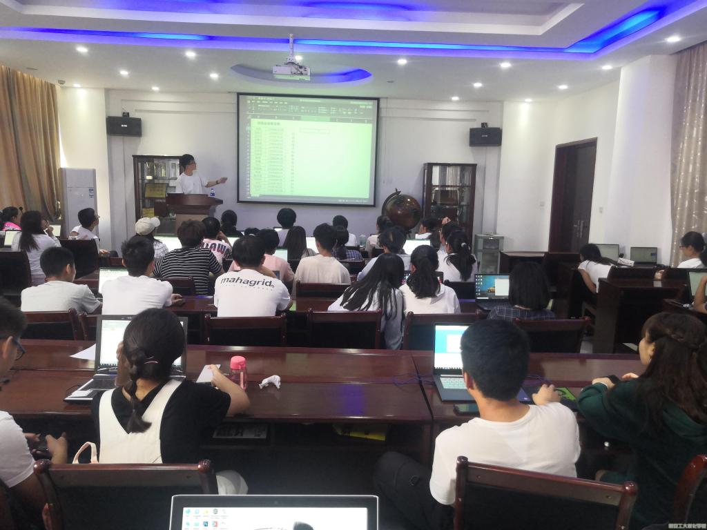 培训开始前,参与培训的全体成员有序就坐,做好准备等待会议开始。随后车枭采用PPT讲解与实际操作结合的方式进行讲解。会议中主要对Excel的函数应用进行教学,并对其中需要注意的细节展开详细的说明,对函数每个字符所代表的含义与如何输入正确的代码反复强调。一方面,在电脑上实际操作讲解,另一方面全体团学干部在自己随身携带的电脑上进行操作,有了理论支撑,也有了实际演练,大家都收获颇丰。接着,对于学习实际操作过程中所存在的疑问,员工负责人为大家一一做出详细解答。最后,车枭对本次会议进行总结,并表示希望以后有机会能举办更多诸如此类的学习交流会,以此提高本院团学干部的各项技能。
