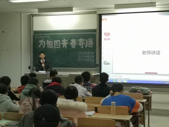 为提升团组织基层活力,激发团员爱国热情,树立远大理想2019年11月18日,威廉希尔williamhill19030208团支部、19030209团支部和19030310团支部在教2-406开展“为祖国青春寄语”主题团日活动,用青春之笔为祖国喝彩。
