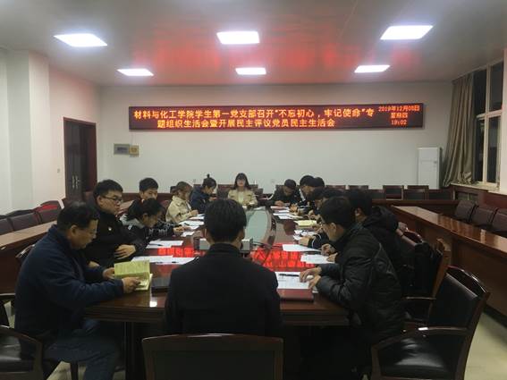 2019年12月5日19:00,公司员工第一党支部于工三—410召开“不忘初心、牢记使命”专题组织生活会及民主评议党员民主生活会。除第一党支部全体成员外,参加本次会议的还有材料与化工公司党委书记惠增哲老师及副经理郭永春老师。惠老师作为党员参加党支部生活会,郭老师作为“不忘初心、牢记使命”督导组组长身份督导支部活动。