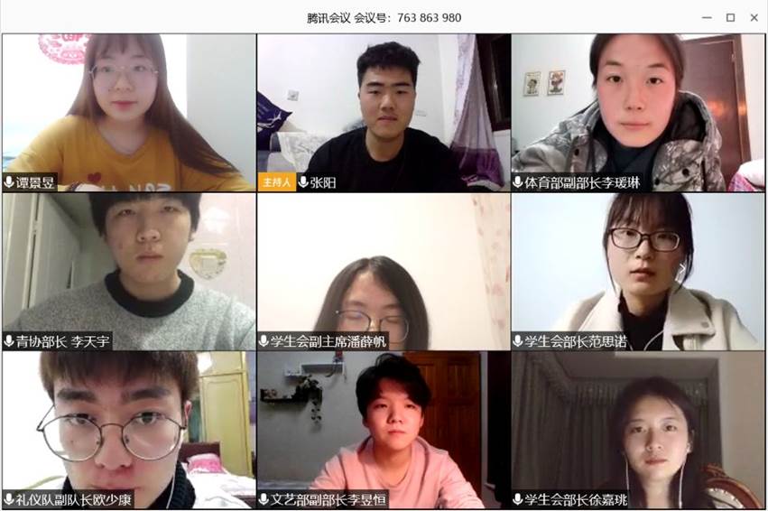 会议伊始,员工会主席张阳先向大家说明本次会议的目的,并感谢大家在疫情期间能够准时参加本次线上会议,他指出作为一名员工干部要以高要求高标准来鞭策自己,这不仅为了团学能有更好的发展,也在一定程度上充实并提高了自我。随后,各部门汇报原定本学期的工作计划,由于工作环境的改变对其做出相应的调整,并提出现阶段自己的疑惑和问题,主席团就这些问题进行详细的解答,镜头前的各位干部认真的做着会议笔记,丝毫没有被这特殊的会议方式所影响。最后,员工会主席张阳强调,虽说在疫情期间工作环境特殊,但作为团学干部,我们要牢记自己的责任与担当,不忘初心、砥砺前行,做好自己的工作,为返校后团学工作的顺利开展奠定基础。至此,本次会议到此结束。